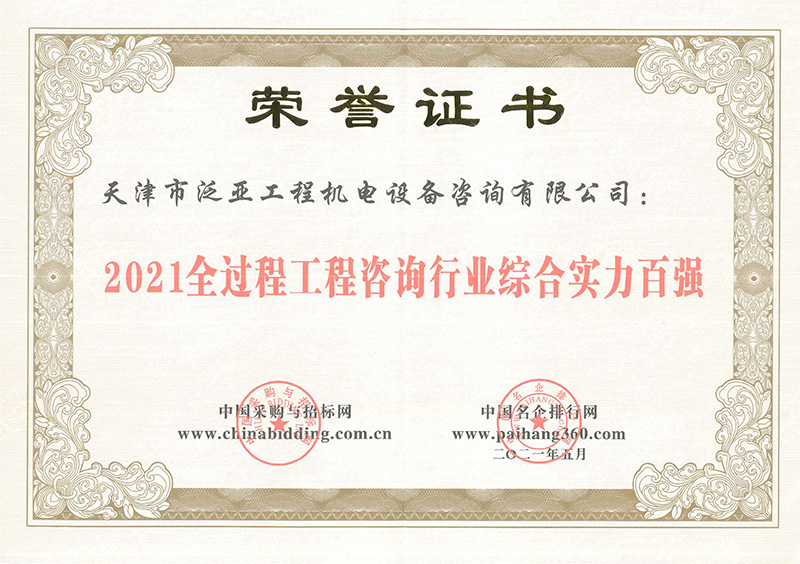 2021全過程工程咨詢行業綜合實力百強